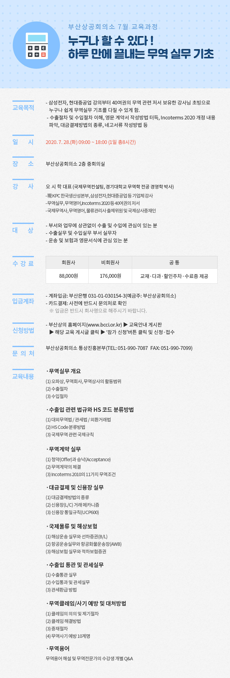 (교육당일에 영수 전자세금계산서 발행, 부산은행 031-01-030154-3)