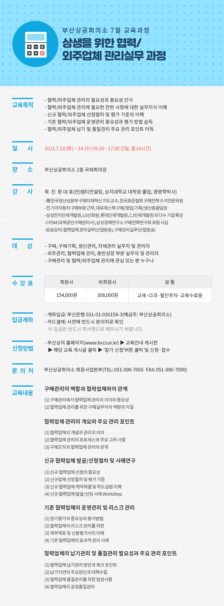상생을 위한 협력/외주업체 관리실무 과정