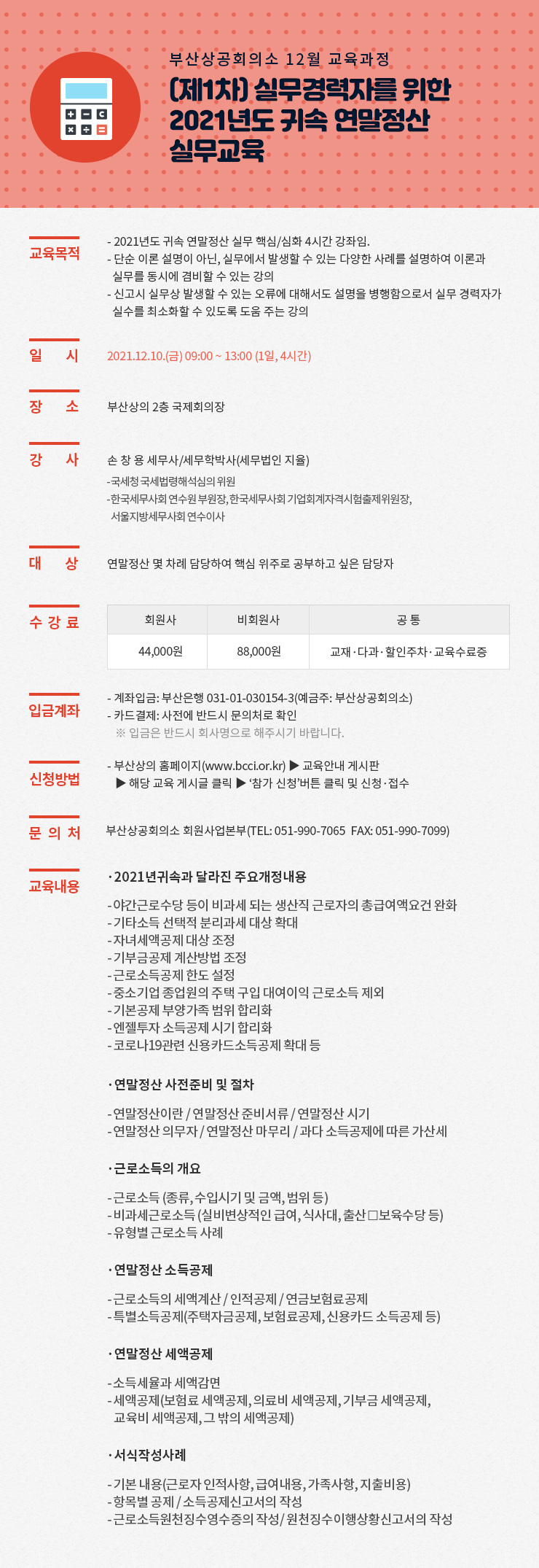 (제1차)실무경력자를 위한 2021년도 귀속 연말정산 실무교육