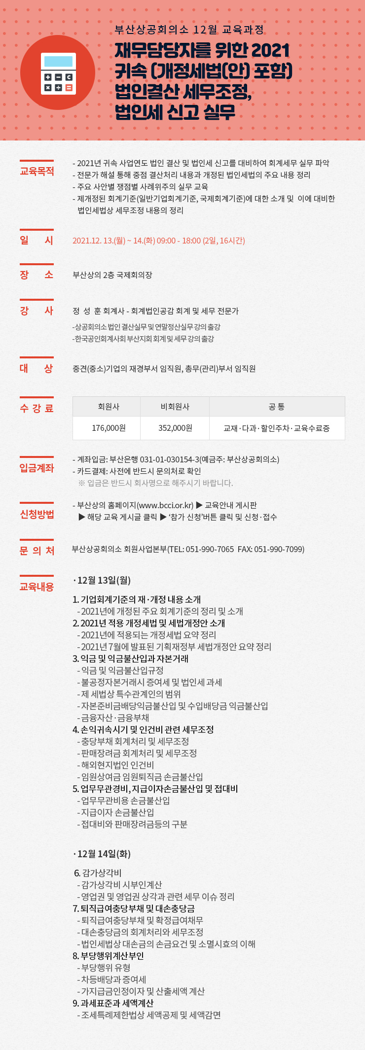 - 수강료 카드결제는 온라인 참가신청 후, 전화(Tel. 051-990-7065)로 사전등록 하시면 됩니다.