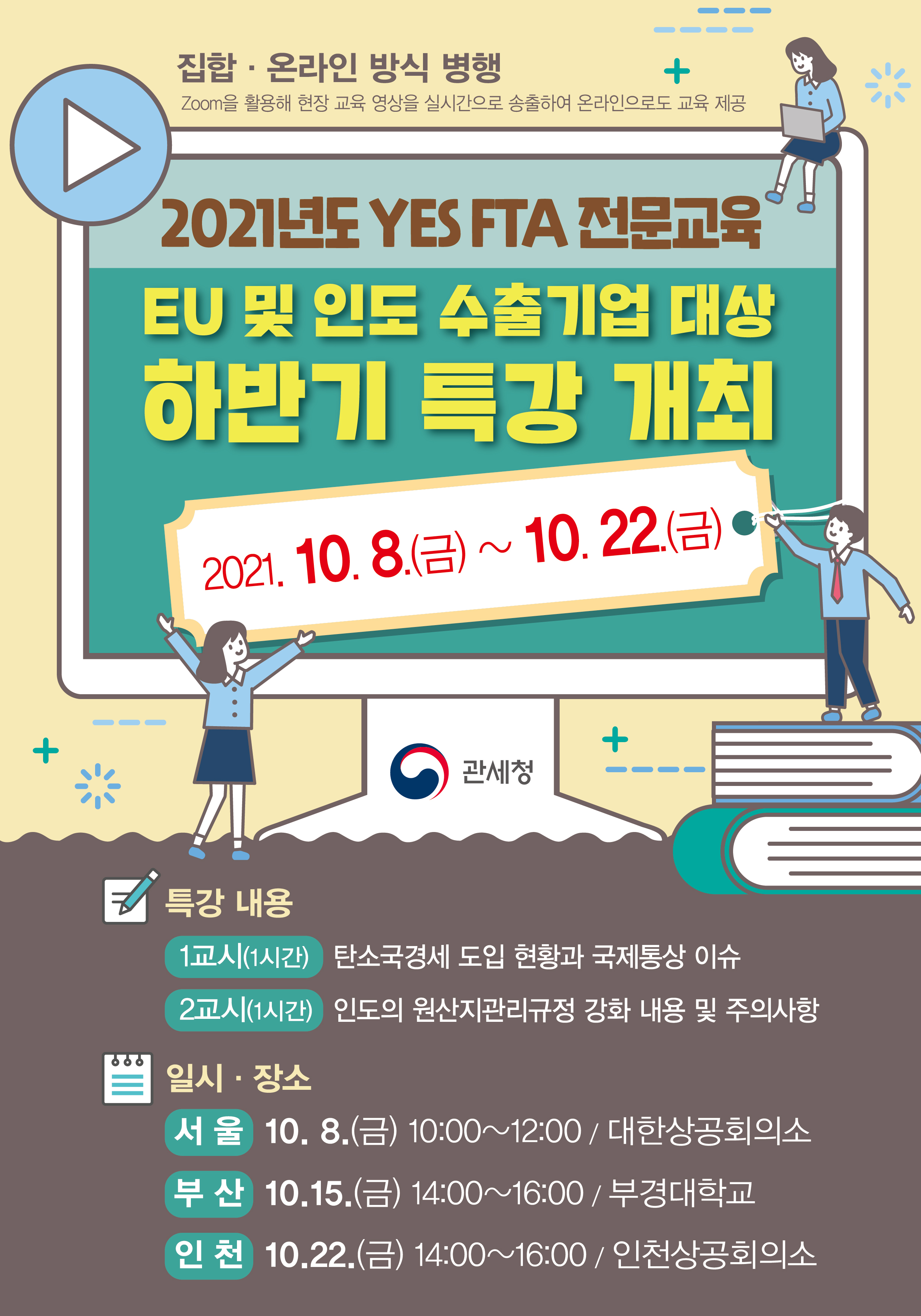 부산본부세관에서는 부산지역 기업 담당자를 대상으로 탄소국경세와 인도 원산지관리에 대해 특강을 개최하오니 관심있는 분들의 많은 참여 바랍니다.
