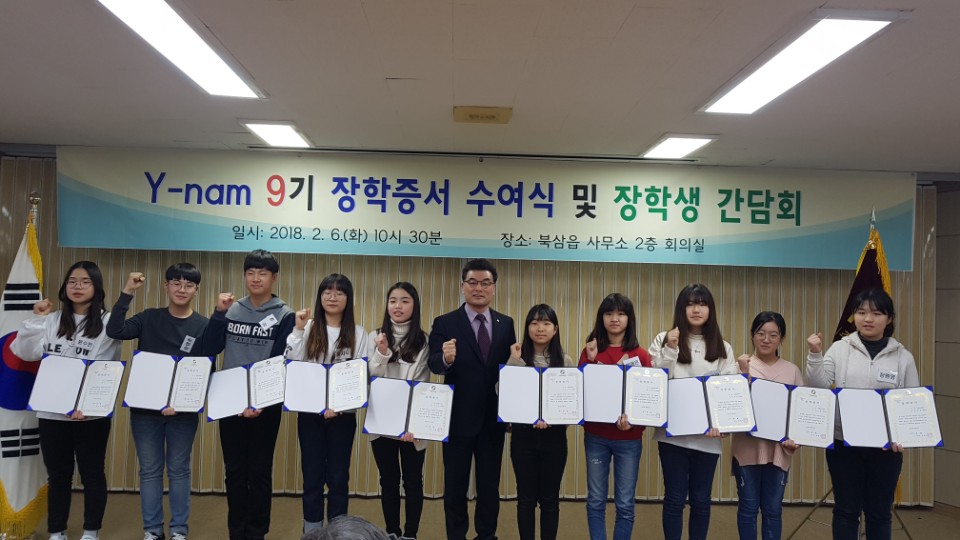 ㈜한탑 경북 칠곡 북삼초등학교 졸업생 10명에게 장학금 전달