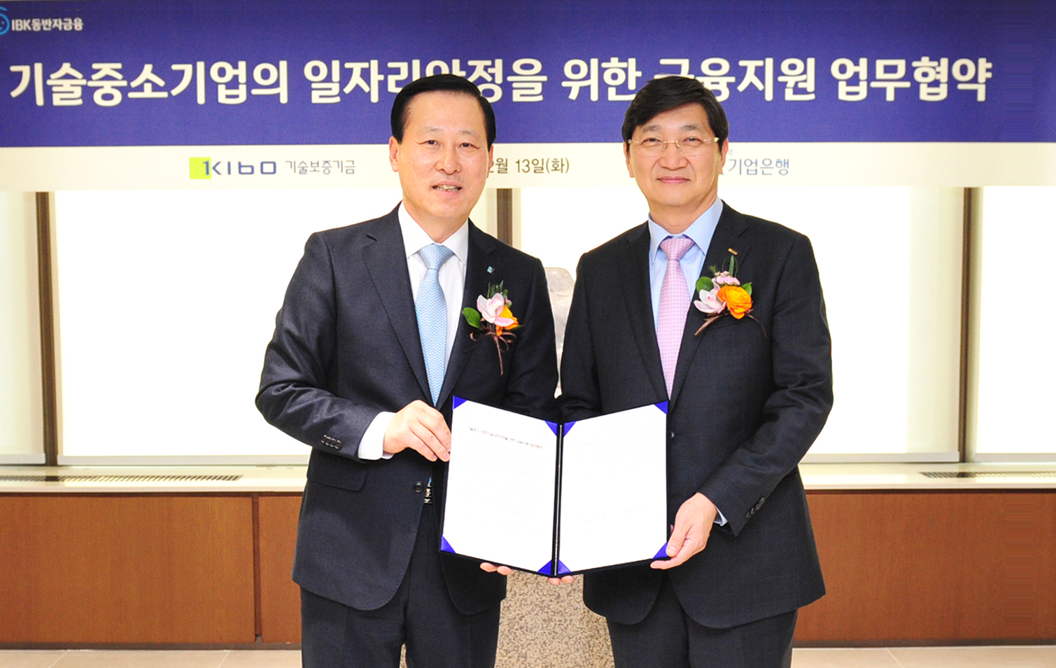 기술보증기금과 기업은행은 지난 2월 13일(화) 서울시 중구 을지로 소재 기업은행 본점에서 「기술중소기업의 일 자리안정을 위한 금융지원 업무협약」을 체결했다. 이번 업무협약은 최저임금 인상에 따른 기술중소기업의 경영 부담을 완화하고 근로자의 고용불안을 해소하기 위한 것으로 총 1,000억원 규모의 우대보증을 지원할 계획이다. 협약보증의 대상은 정부의 일자리 안정자금 수혜기업으로, 기업당 지원한도는 최대 2억원이다. 협약에 따라 기보 는 첫해 기업은행이 출연하는 보증료 지원금을 활용하여 보증료를 전액 면제하고, 이후에는 고정보증료율 0.7% 를 적용하여 기업의 보증료 부담을 줄이기로 했다. 기업은행은 본 협약보증 관련 보증료 지원금을 출연하고, 보증 서 대출에 대해 금리를 우대할 예정이다. 또한, 기보는 금번 협약 대상기업을 기보의 일자리창출 지원프로그램(굿잡보증)에 포함하여 운용할 계획이다. 기 보의 ‘굿잡보증’은 정부의 일자리 창출 정책기조에 발맞춰 최저임금 인상에 효율적으로 대처하고, 비정규직, 경력 단절여성, 장애인, 지방소재 일자리 등 고용취약자의 채용을 우대지원하여 일자리 질을 높이기 위한 일자리창출 전용 프로그램이다. 기보 김규옥 이사장은 “기보는 일자리 안정자금 지원기업에 대한 원활한 금융지원으로 중소기업의 안정적 사업 추진을 돕고, 소득주도 성장기반을 마련하는데 마중물 역할을 충실히 수행하겠다”고 밝혔다.
